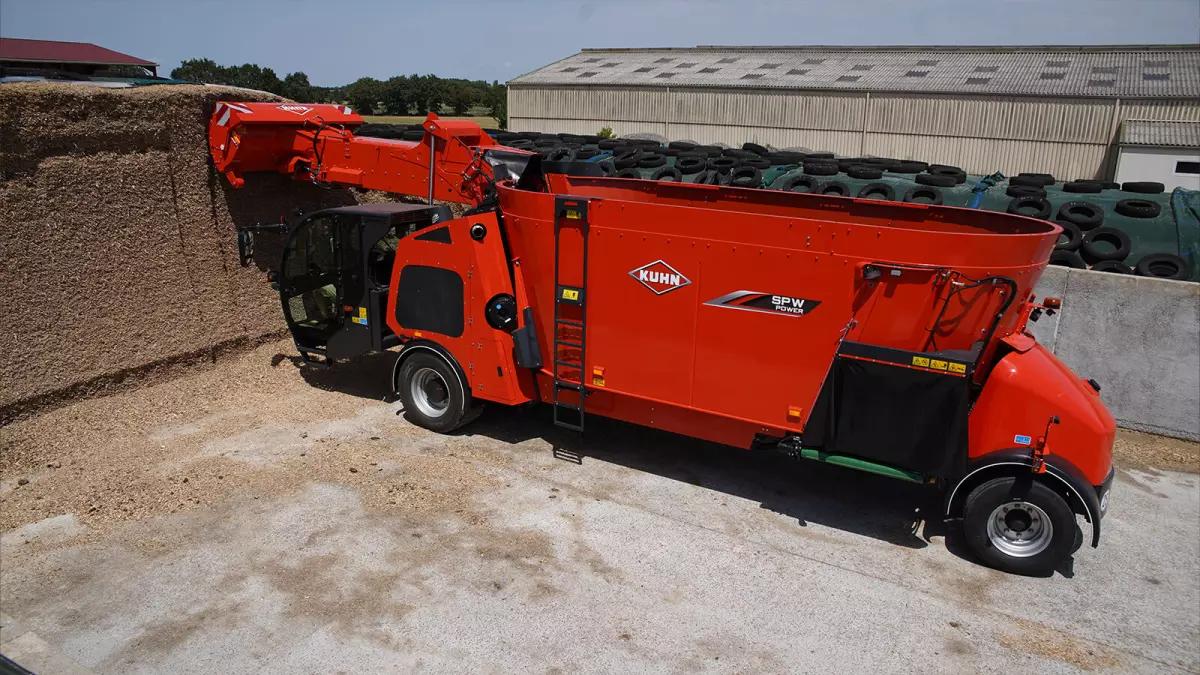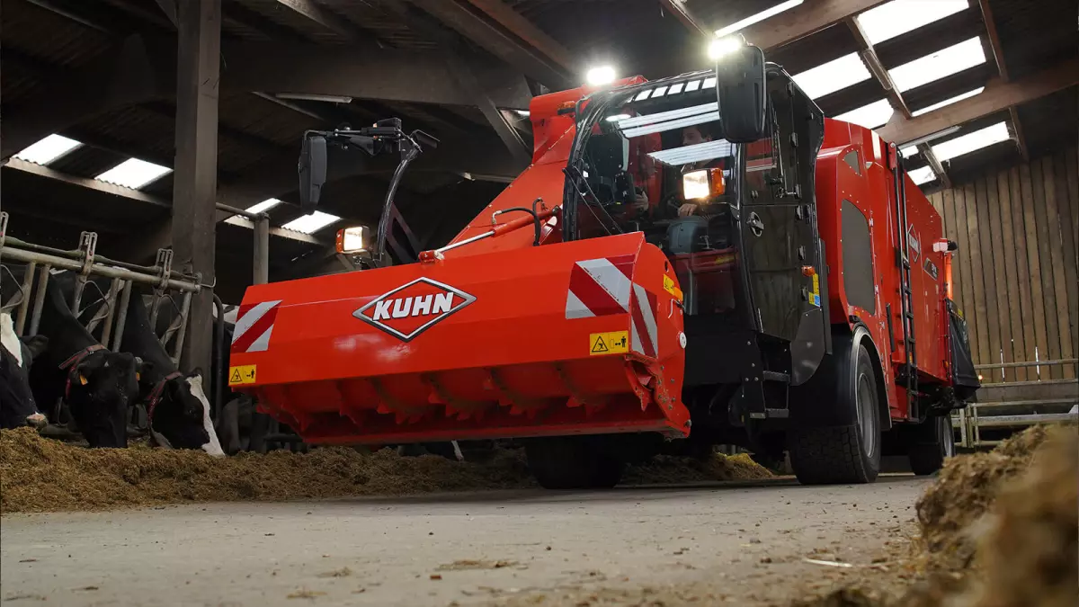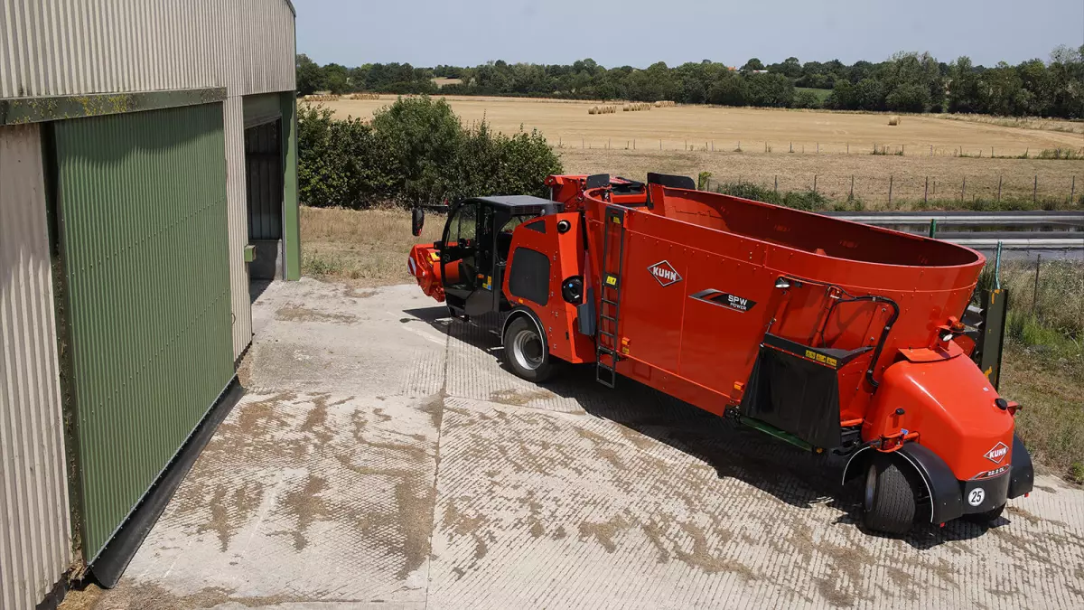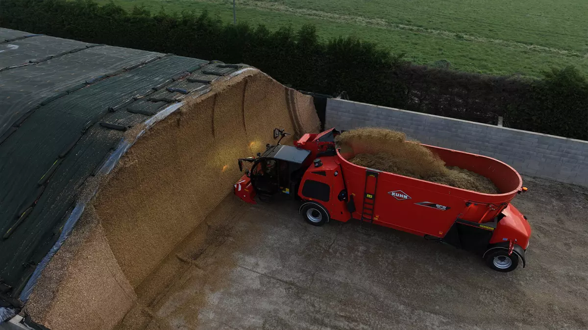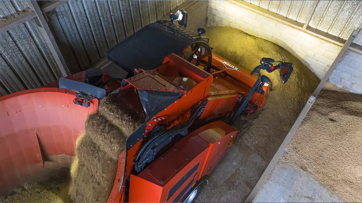 La misurazione dell’avvicinamento al piede del silo è a sua volta un’esclusiva dei carri miscelatori automotori KUHN. In prossimità del piede del silo, la velocità di discesa del convogliatore viene ridotta per garantire una posa a terra senza sobbalzi. I pavimenti del silo vengono preservati come pure l’assieme costituito dalla struttura della fresa e dal convogliatore della macchina.