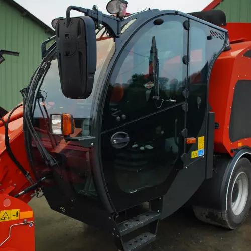 Il convogliatore è progettato con un nastro in PVC e sposta il foraggio sul lato destro del serbatoio. Proiettata nella direzione del flusso di miscelazione (direzione di rotazione delle coclee), la miscelazione non penalizza le prestazioni di carico e la sua qualità di migliora a sua volta.