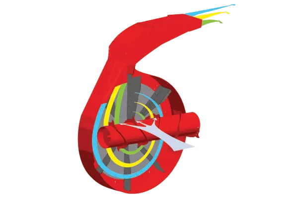 Con il sistema brevettato POLYDRIVE, il rotore di alimentazione beneficia della potenza generata dal volano della turbina. La distribuzione di foraggi a fibra lunga non è più un compito arduo.