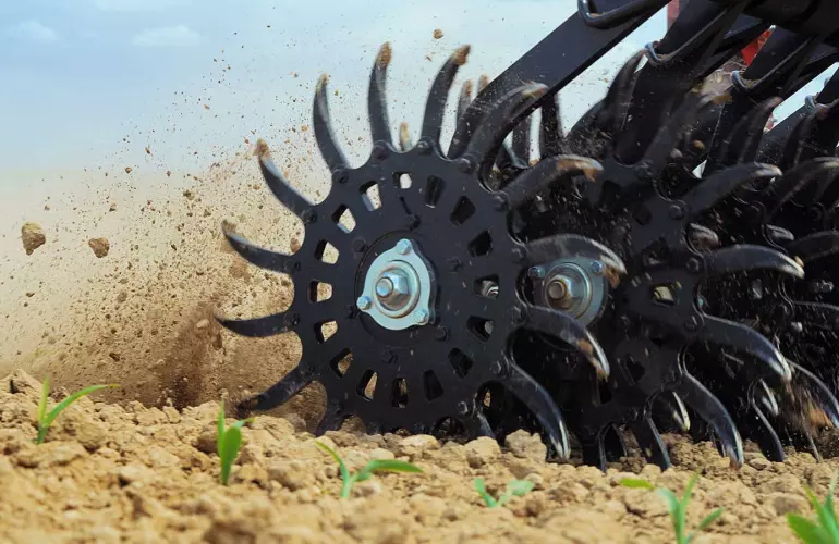 Grazie all'interfila di 10 cm tra ogni elemento stellare e alla larghezza di 1,80 cm di ciascun cucchiaio, l'intera larghezza di lavoro viene effettivamente smossa e le erbacce vengono rimosse