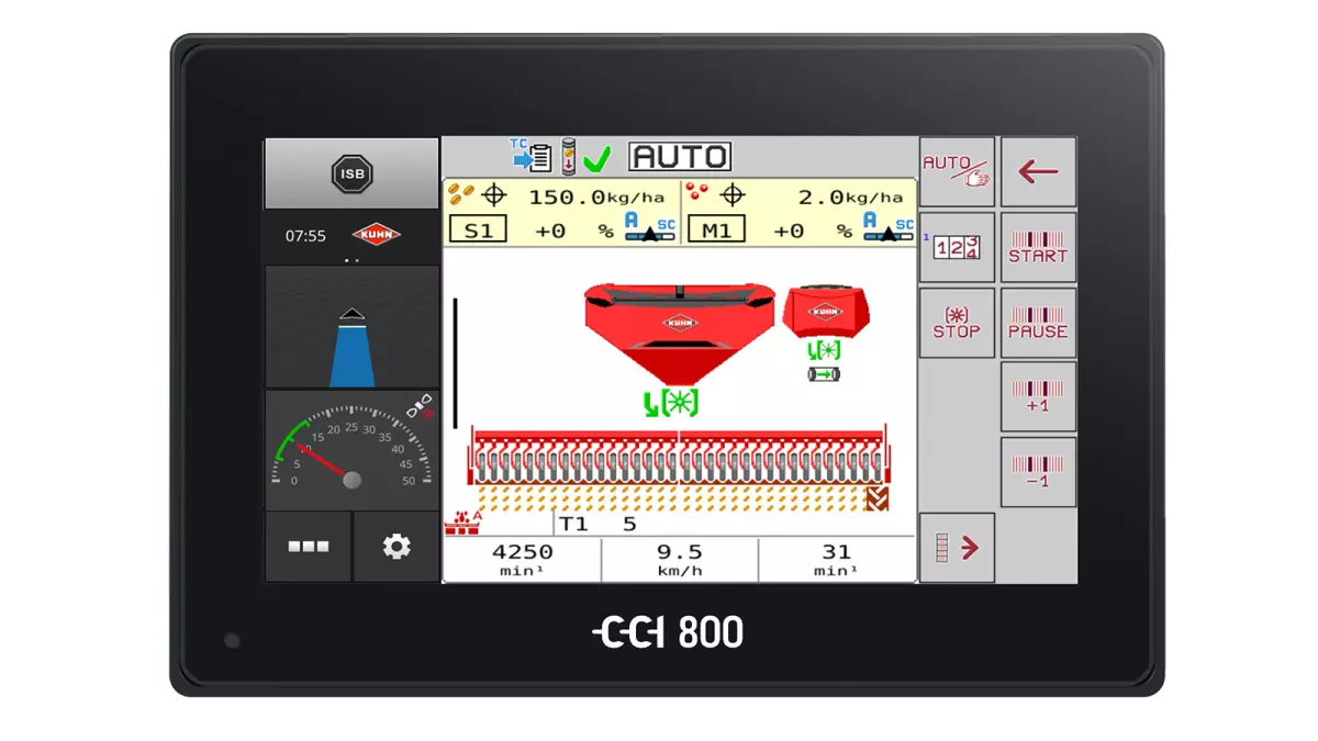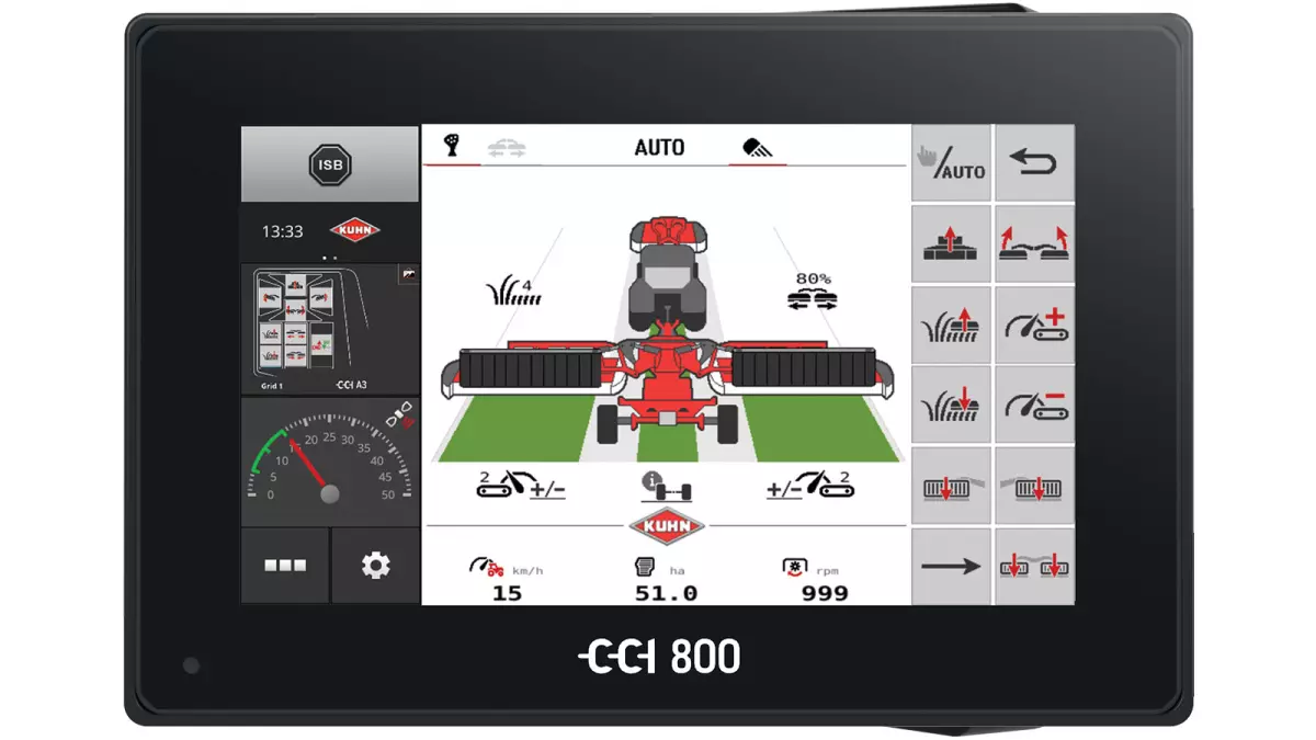 Con il suo schermo da 8”, CCI 800 offre le dimensioni ottimali per concentrarsi su una singola applicazione. È anche possibile visualizzare due applicazioni aggiuntive senza sovrapporre la vostra applicazione principale. Molto facile da usare, lo schermo antiriflesso fornisce un'eccellente visibilità, anche quando c'è il sole. L'interfaccia del CCI 800 dispone della funzionalità MultiTouch che supporta la navigazione tra più applicazioni. Vari movimenti intuitivi delle dita, come "premi", "tocca e trascina", "trascina e rilascia" o "zoom avanti/indietro" consentono di navigare facilmente e rapidamente tra vari menu, schermate e applicazioni, come si fa di solito con uno smartphone o tablet.
