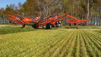 Un'ora in meno di manutenzione, un'ora in più di andanatura! L'azionamento idraulico dei rotori è ottenuto da pompe idrauliche azionate da un'unica trasmissione per ridurre al minimo la manutenzione. Dimentica l'ingrassaggio quotidiano delle trasmissioni secondarie. Risparmi fino a un'ora rispetto a un giroandanatore meccanico di dimensioni equivalenti. Una risorsa che può fare la differenza quando la pioggia minaccia di cadere e il foraggio deve essere raccolto in fretta. I requisiti di manutenzione sono quindi limitati. A questo si aggiungono altri vantaggi: funzionamento regolare e silenzioso e usura minima. L'unità idraulica dei giroandanatori GA 13231, 14231 e 15231 è posizionata sulla testa oscillante del telaio della macchina. La trasmissione primaria è così sempre perfettamente allineata al trattore, anche nelle curve strette. Inoltre, dalla cabina è possibile modificare la velocità di rotazione della presa di forza per un perfetto adattamento al tipo e al volume del foraggio. Puoi scegliere tra due velocità di rotazione: 750 o 1000 giri/min per risparmiare carburante.