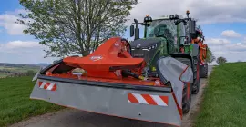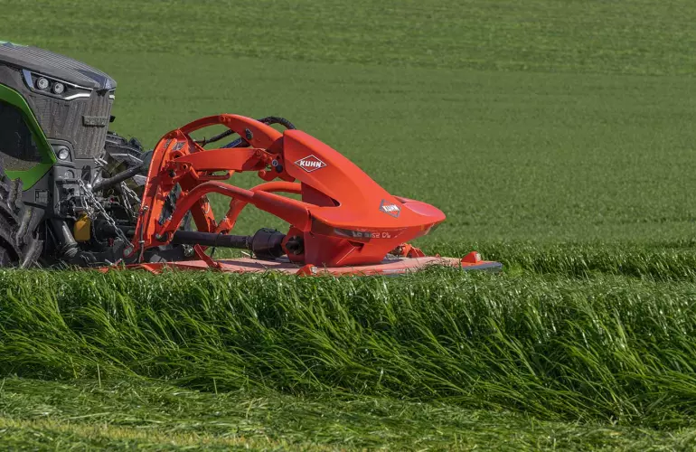 Gli ammortizzatori sono integrati tra la barra di taglio e il telaio, prolungando così la vita della falciacondizionatrice. Gli urti hanno un impatto minore sulla struttura della macchina, anche ad alta velocità in avanti.