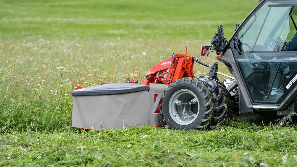 Il design compatto della serie GMD 1021 F è ideale per trattori di piccole dimensioni che lavorano in pendenza. Queste macchine possono essere accoppiate a trattori standard e a trattori per terreni in pendenza di tipo AEBI o REFORM grazie al loro peso limitato a 575 kg o 635 kg. La sospensione della macchina è assicurata da 2 molle o da sospensioni integrate nella tiranteria di sollevamento del trattore. L’articolazione pendolare raggiunge un’escursione di +/- 8° per un perfetto adeguamento al profilo del terreno.