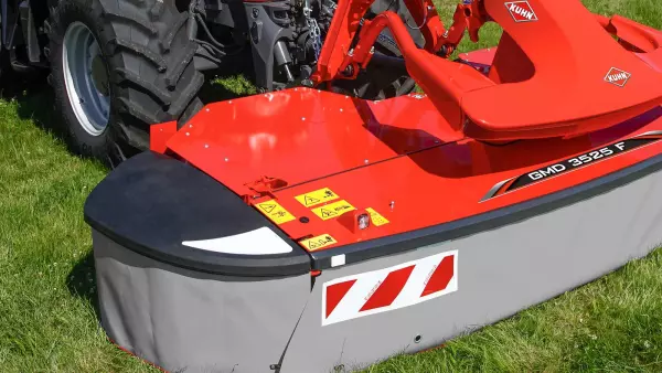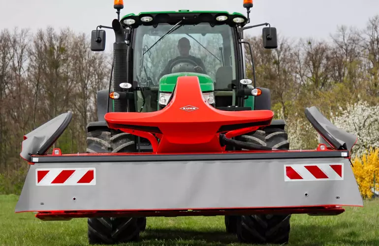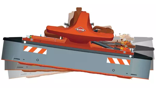 Il sistema PROTECTADRIVE è integrato nella barra di taglio per resistere agli urti e agli ostacoli durante la falciatura. In caso di un urto violento contro uno dei dischi, la barra porta dischi si piega appena sopra il porta dischi, grazie a una scanalatura dimensionata attentamente. Le ruote dentate sono protette. La macchina può tornare a funzionare rapidamente con bassi costi di riparazione.