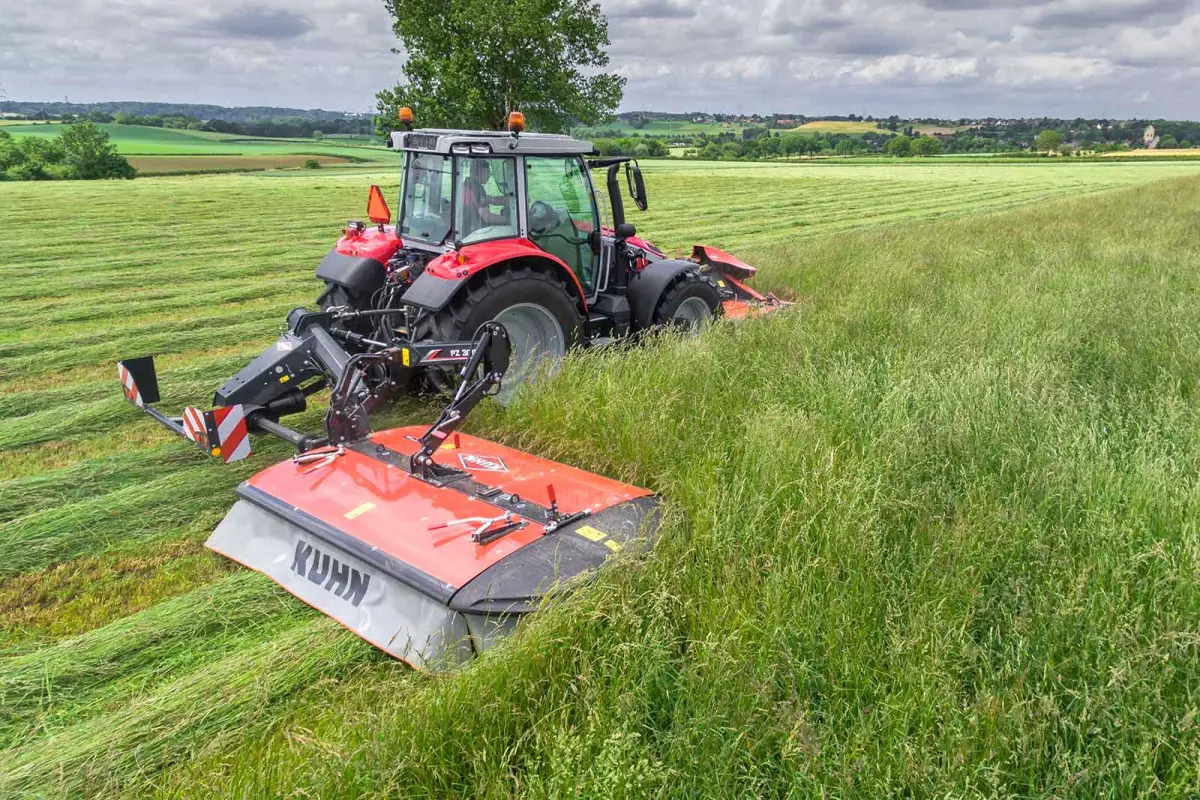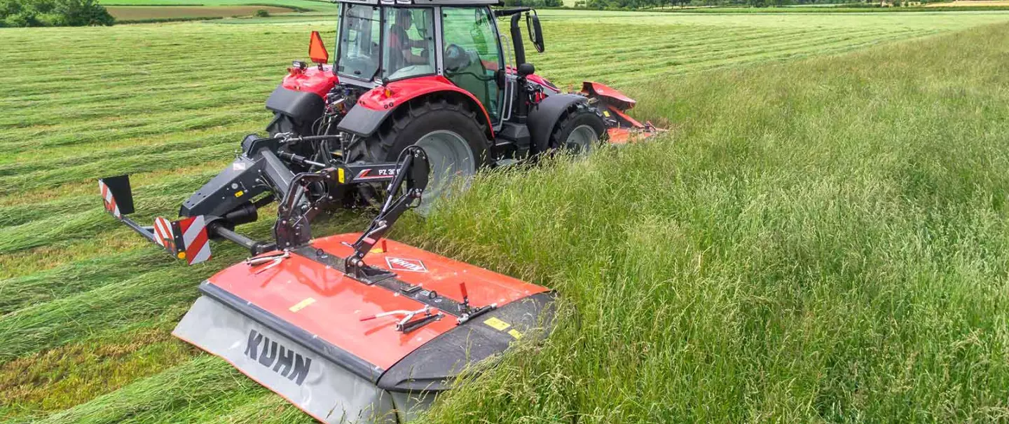 I tamburi rotondi non sono l'ideale per il trasporto del foraggio; proprio per questo KUHN utilizza tamburi con due pareti piatte per un trasporto ottimale del foraggio senza rischio di intasamento. Il movimento del prodotto ha un impatto sulla qualità della falciatura. Per questo motivo KUHN ha scelto di utilizzare delle barrette di trasporto intercambiabili.