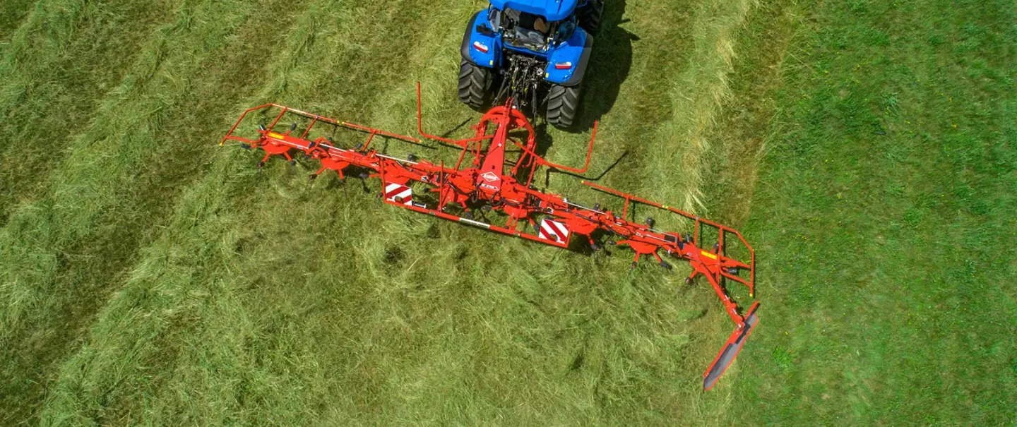 Con l'invenzione di questo nuovo sistema di trasmissione da parte di KUHN, l'essiccazione è entrata in una nuova era. Da quel momento, infatti, è stato possibile azionare un grandissimo numero di rotori, ripiegarli con una compattezza ineguagliabile e questo senza alcuna manutenzione. Una vera rivoluzione! Dopo il lancio dell'azionamento a dita DIGIDRIVE circa vent'anni fa, più di un milione di rotori circolano sulle colline del mondo per essiccare il foraggio con un'affidabilità eccezionale. L'azionamento DIGIDRIVE è realizzato in acciaio temprato e non richiede manutenzione.